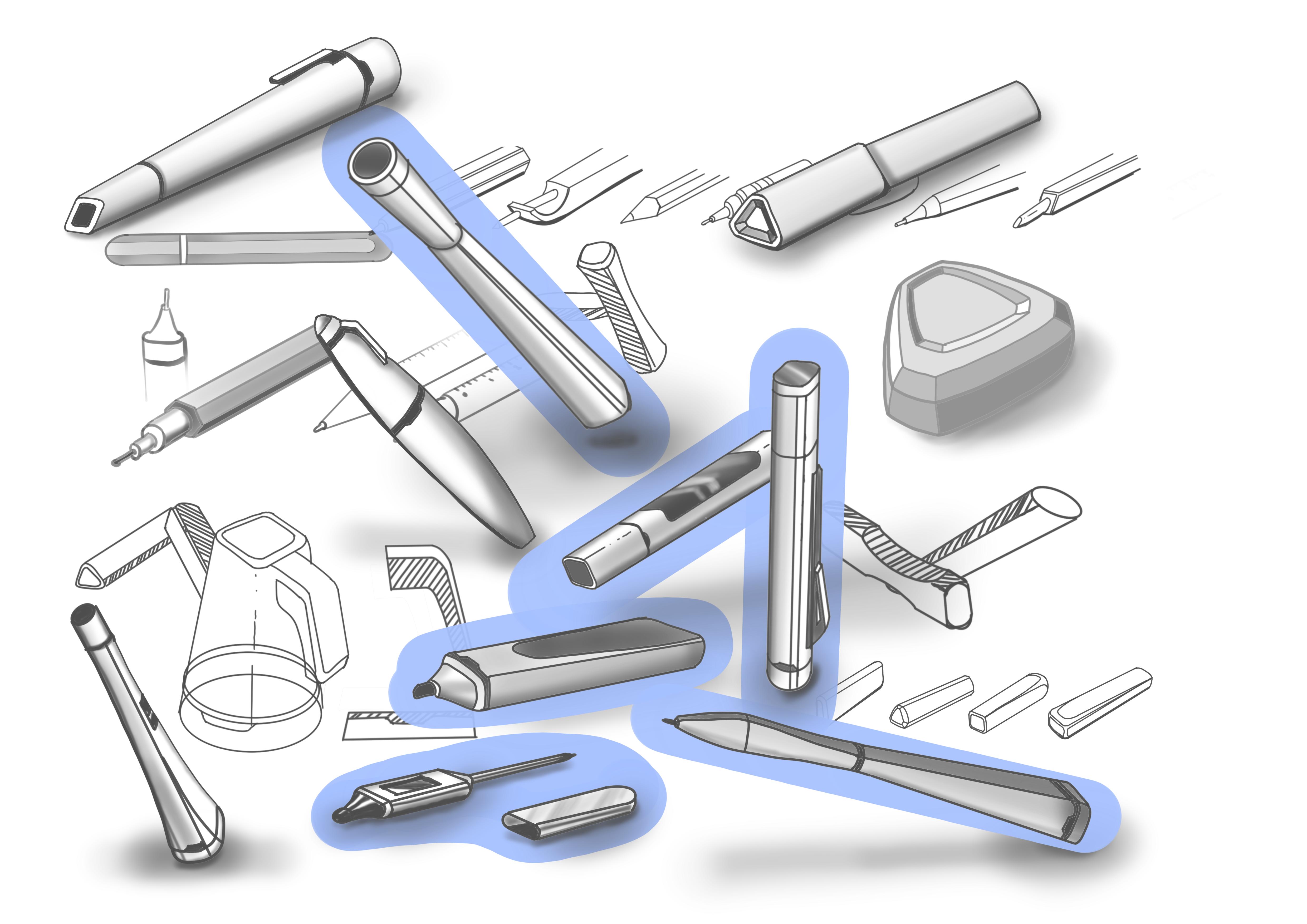 Research and use the visual language of an existing brand to design a writing instrument that fits into a product family of that brand and meets the needs of the brand's users.